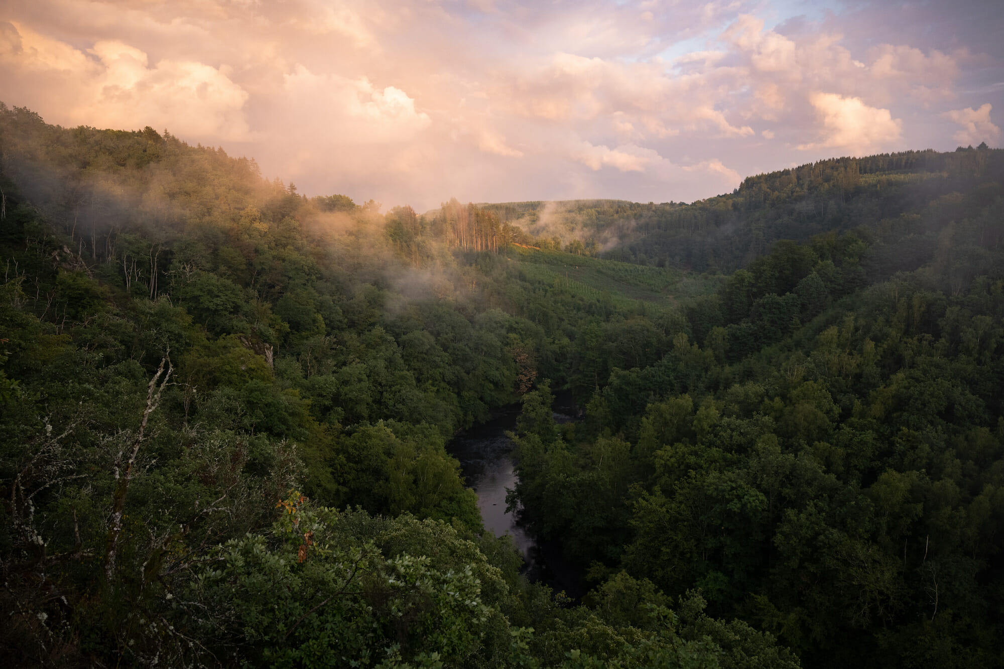 Bien rassasié, nous replierons nos packrafts et nous remonterons la rivière par monts et par vaux pour retourner à notre point de départ. Après les avoir contemplé depuis la rivière, nous passerons à travers la forteresse celtique du Cheslé et nous crapahuterons sur le rocher du Hérou avant de rejoindre le barrage, point final de ton aventure.